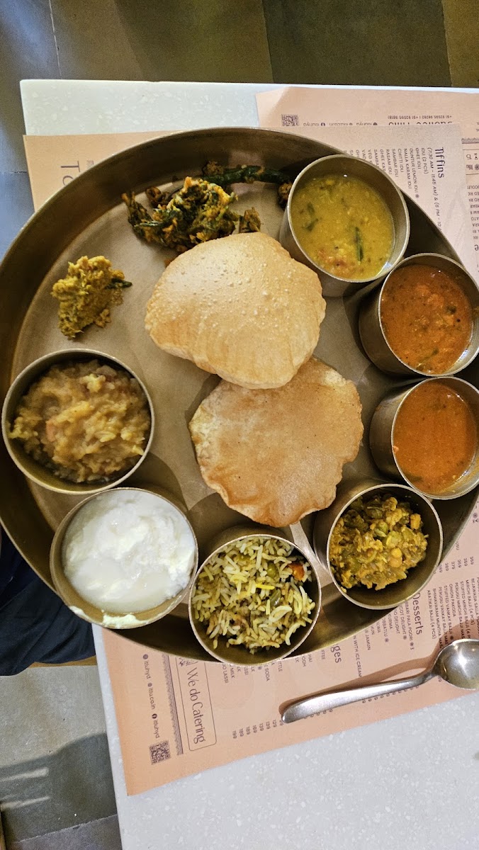We went here for a small office lunch, we have ordered thalli, which was good, everyday has its own items in thalli, except for poori and sweet, most of items are unlimited, i like kurma, ghee, poori, everything was good. Curries were not spicy, i think they can add a bit in the chutneys. Ambience was good service was also equally good. Overall we had a good experience. Keep this up team.